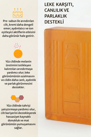 Glow Tone Sabunu, cilt yüzeyinde zamanla biriken sebum, ölü deri, mat görünüm oluşturan kalıntılar ve çevresel kirleri nazikçe arındırmak için geliştirilmiş özel bir bakım barıdır. Cildi sertleştirmeden temizlerken, donuk ve yorgun görünümün azalmasına yardımcı olur; daha aydınlık, daha pürüzsüz ve daha canlı bir cilt görünümü hedefler.